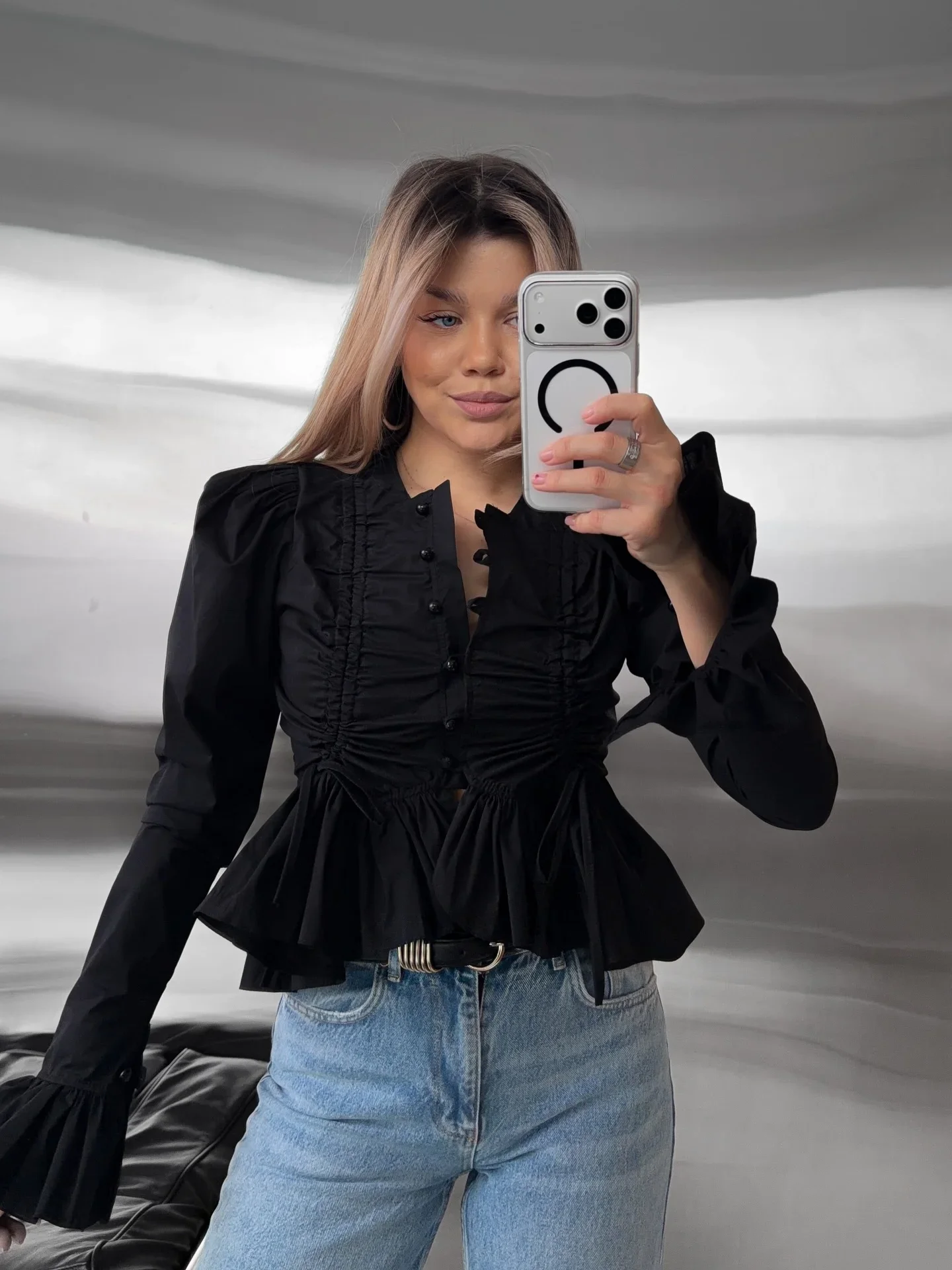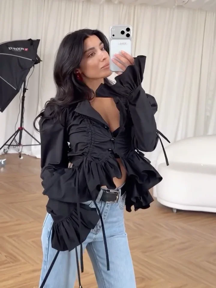 Model Number: Elegant Women's V-neck Waist-defining Blouse